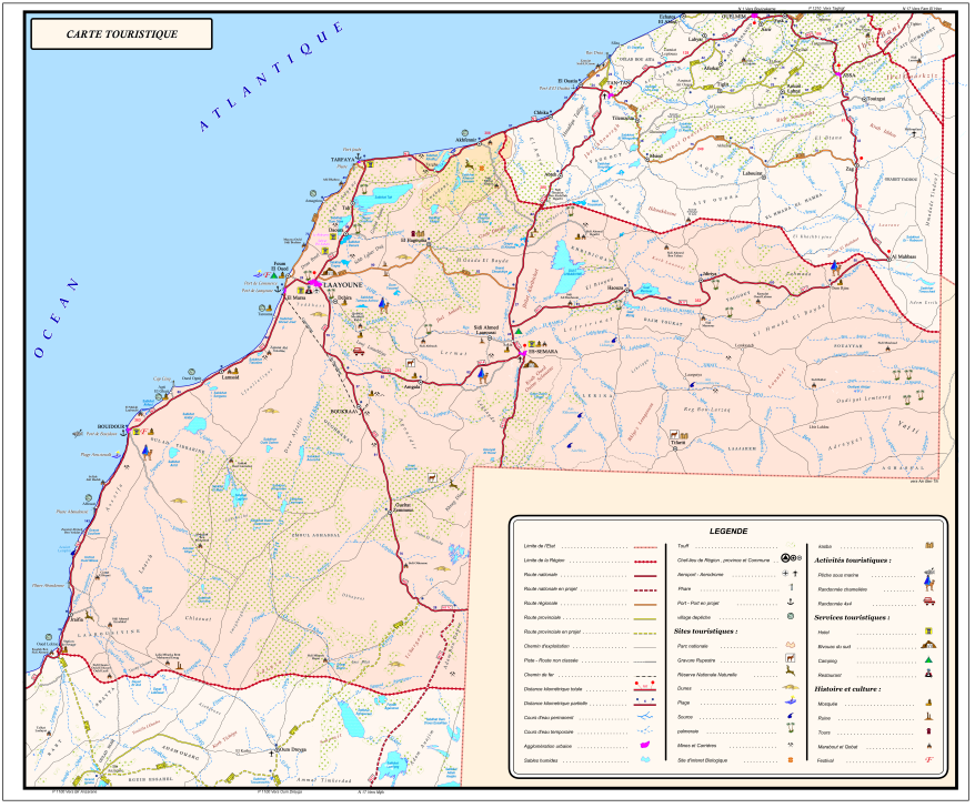 Extrait de la carte touristique de la région de Lâayoune – Sakia Al Hamra