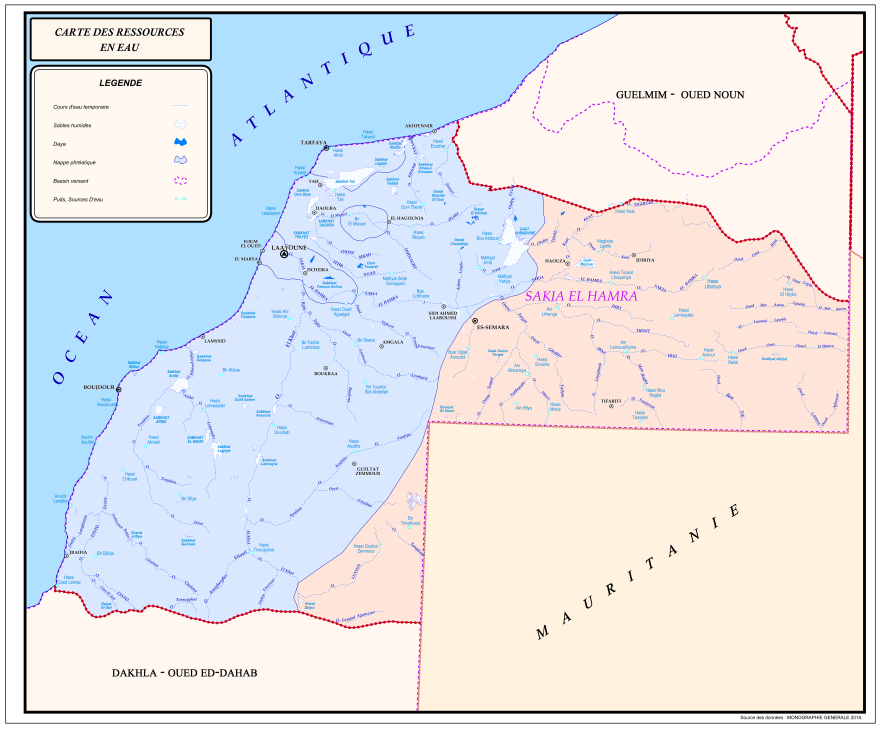 Extrait de la carte des ressources en eau de la région de Lâayoune – Sakia Al Hamra